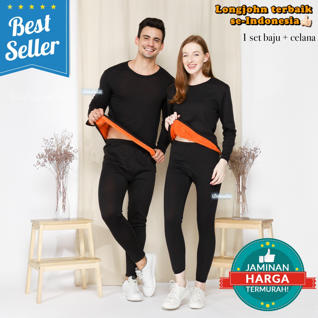 Premium 1 set Longjohn Winter Pria / Wanita thermal underwear long john musim dingin