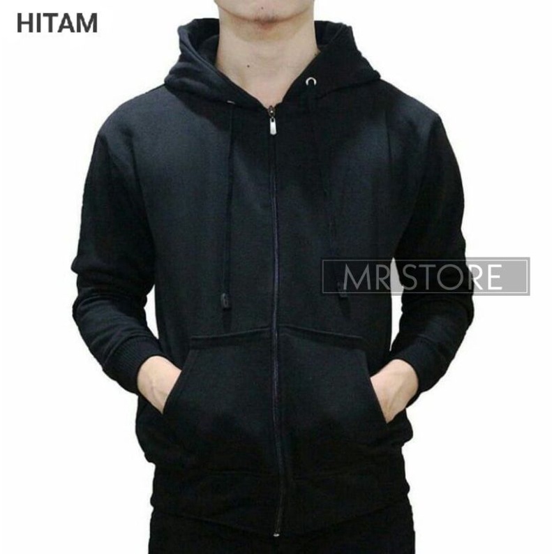 L,XL,XXL Jaket zipper hoodie polos hitam mr store