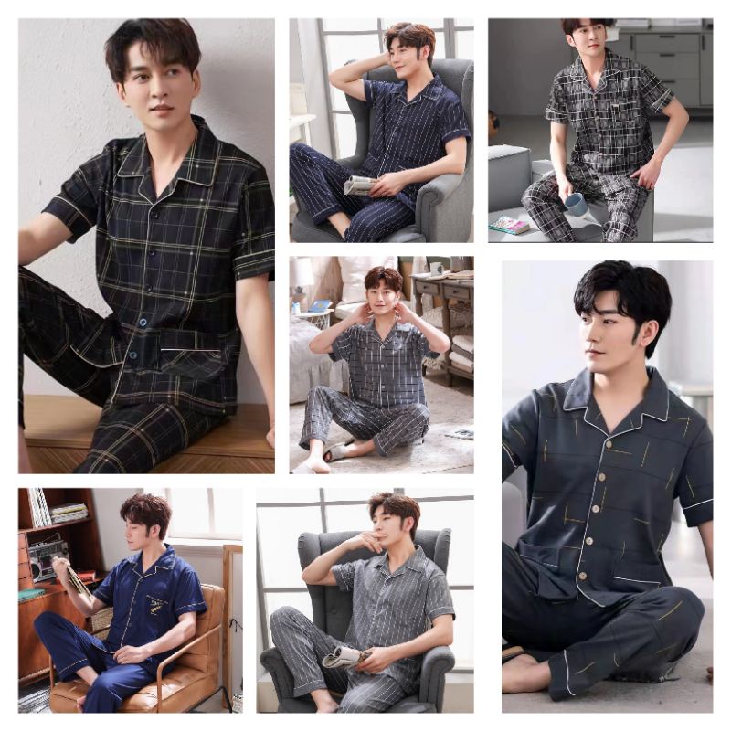 Cp piyama cowok dewasa corak kotak/Piyama Baju Tidur Pria Dewasa Import/setelan piyama lengan pendek