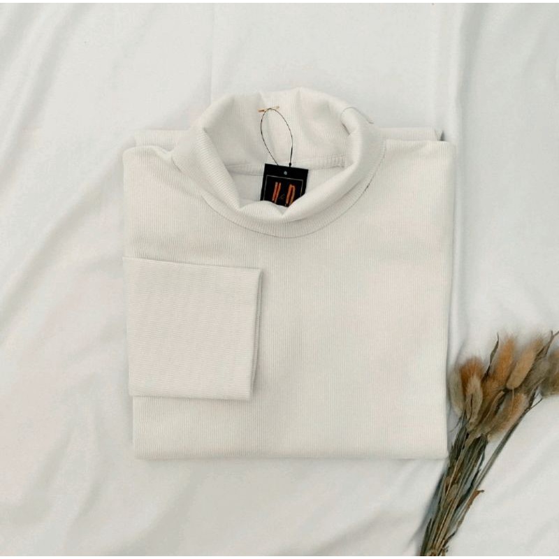 Kaos Turtleneck Pria Wanita Leher Tinggi Rib Premium